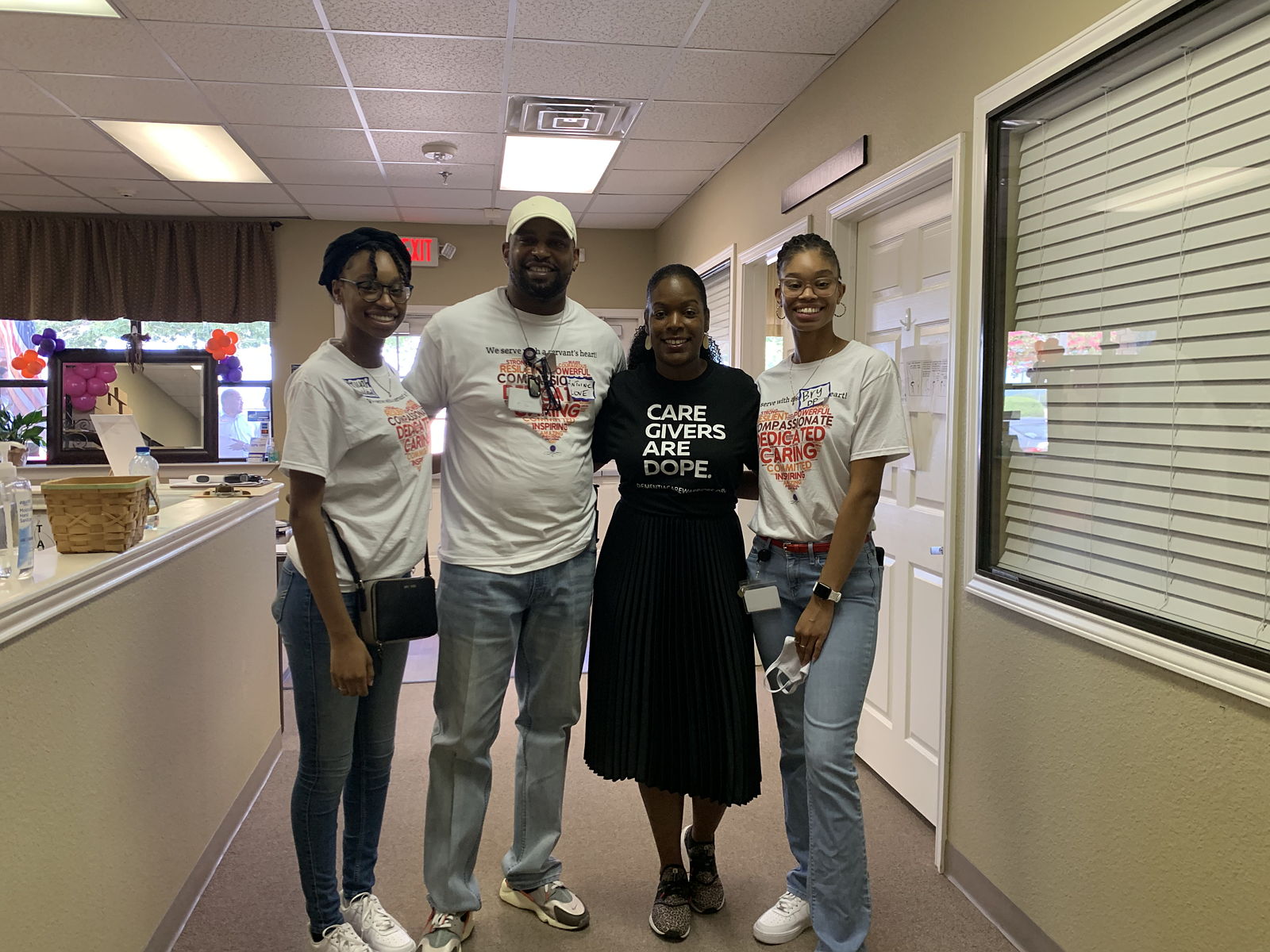 Antoine, Bryunna, Alternate Administrator at PC Home Health, and Aniyah with Veronica, Founder of Dementia Care Warriors at the Revive Refresh Workshop hosted by Friend's Place and Dementia Care Warriors.