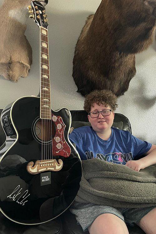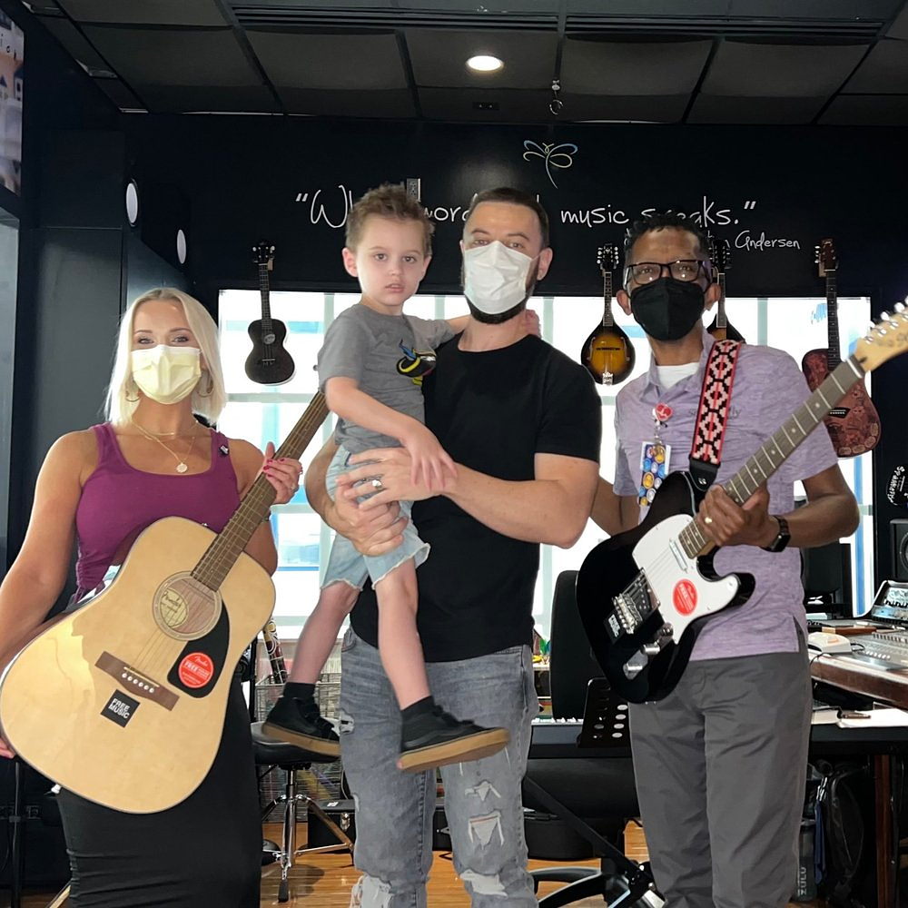 Lion always had a couple drums, a keyboard or a guitar to keep him busy in the hospital. Now that he’s home and chemo free, Music has become a massive part of his life and future. These children have gone through treatment have incredible perspectives on life. They have had to fight battles not many can relate to. We believe their stories need to be told and their voices need to be heard through the gift of music. Thank you for consideration in partnering with FREE MUSIC and giving the gift of music to children fighting for their lives.