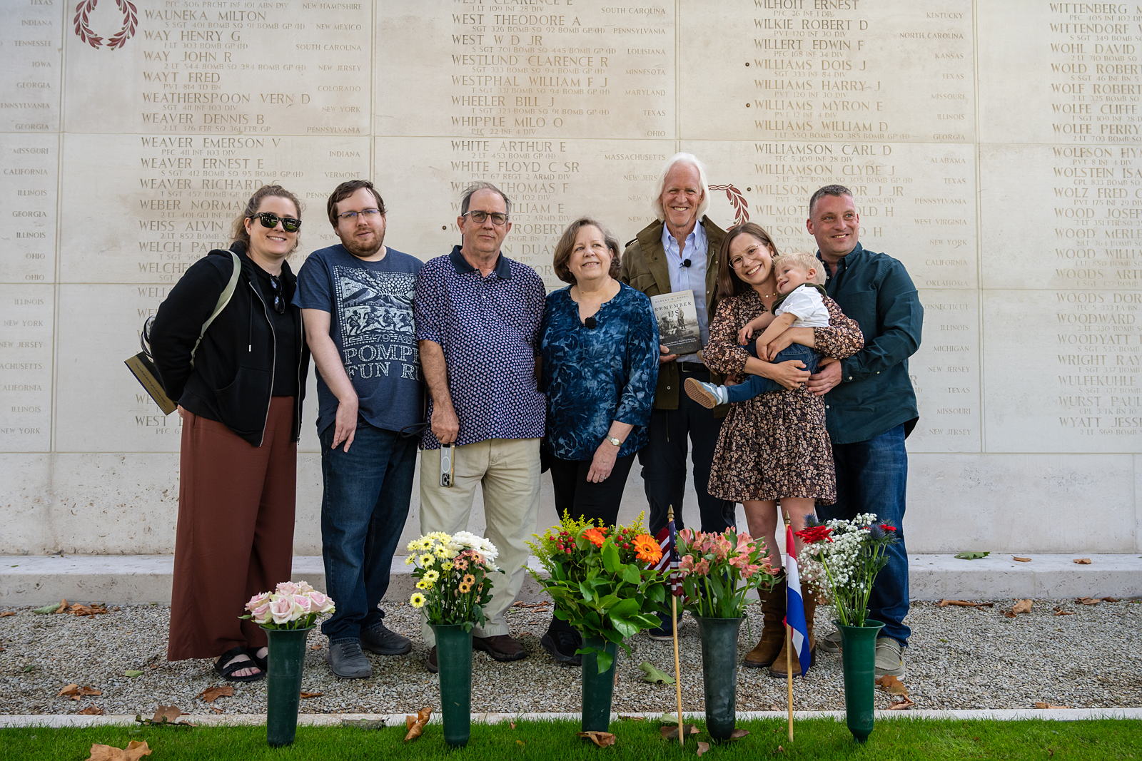 At the Netherlands American Cemetery, the family of June Brandt meets the Dutch adopters of her brother, Staff Sgt. William Durham West Jr., who was killed in action on March 20, 1945. (Monuments Men and Women Foundation collection)